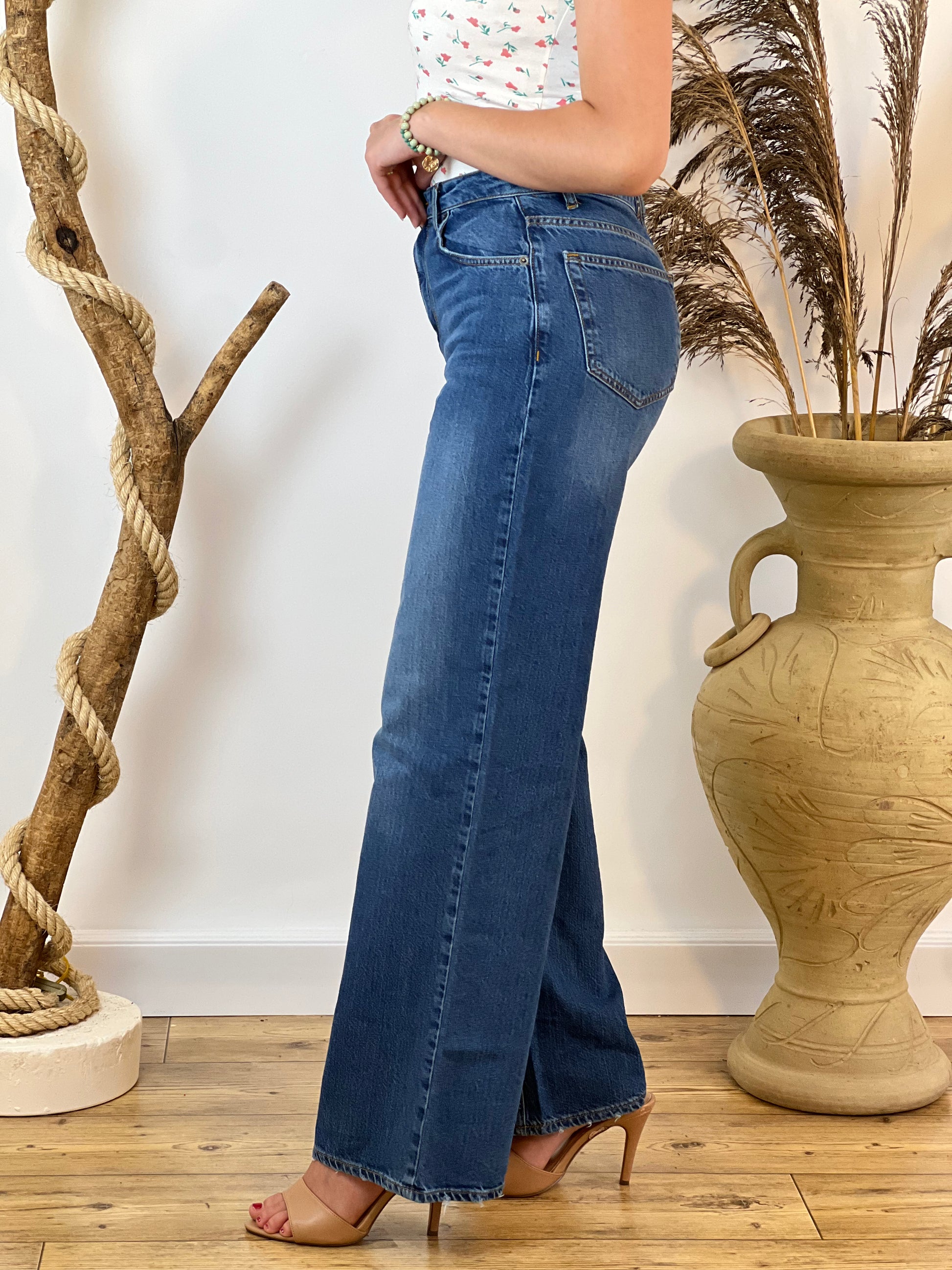Jean Larges Taille Haute Ourlet Roulotté Multiples Poches